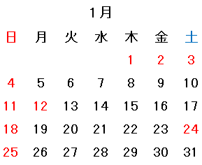1月営業日のお知らせ